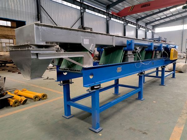 平衡型輸送機(jī),通過電機(jī)的曲柄運(yùn)動和彈簧的共振運(yùn)動使上下槽體振動,可以完成輸送、烘干、冷卻、剝離、篩選、脫水、定向和多點(diǎn)分配; 輸送槽體寬度從 150毫米到 2米不等,長度可達(dá) 30米。特點(diǎn):1)平衡型,振動不會傳遞到安裝底座。因此,也可以安裝在高框架上。另外,如果地基是實(shí)心的,比如混凝土,可以不安裝防振彈簧,降低整體高度;2)料槽中間可設(shè)數(shù)個“傾卸”出口,使被輸送的物料可從任一出口卸出。3)配備變速裝置,可在工作過程中調(diào)節(jié)流量。4) ABM型可實(shí)現(xiàn)上下槽可同時輸送物料。           5)節(jié)能、低維護(hù)和長期可靠性;聯(lián)系我們,了解有關(guān)偏心連桿平衡振動輸送機(jī)的更多信息。